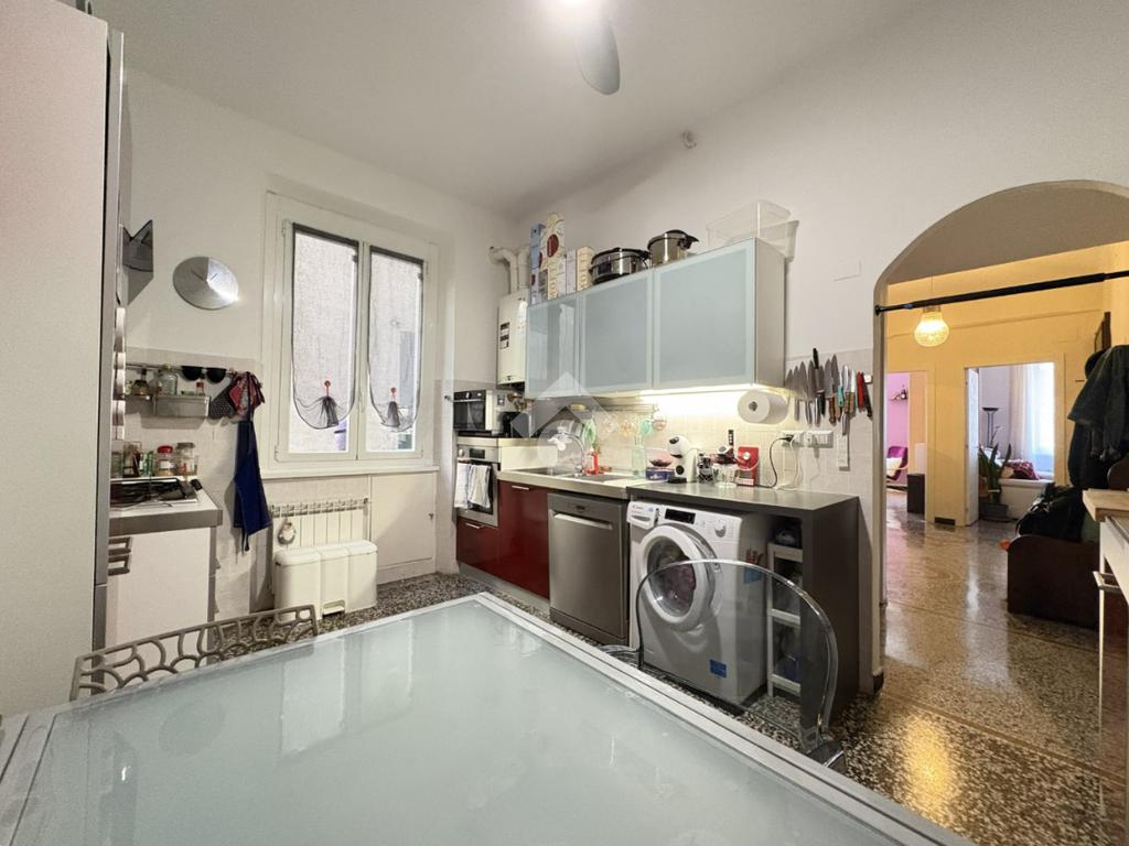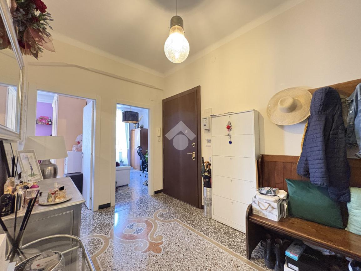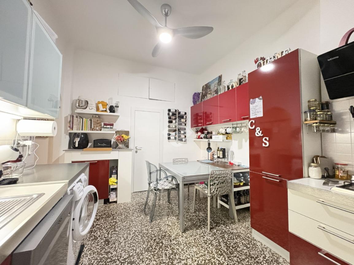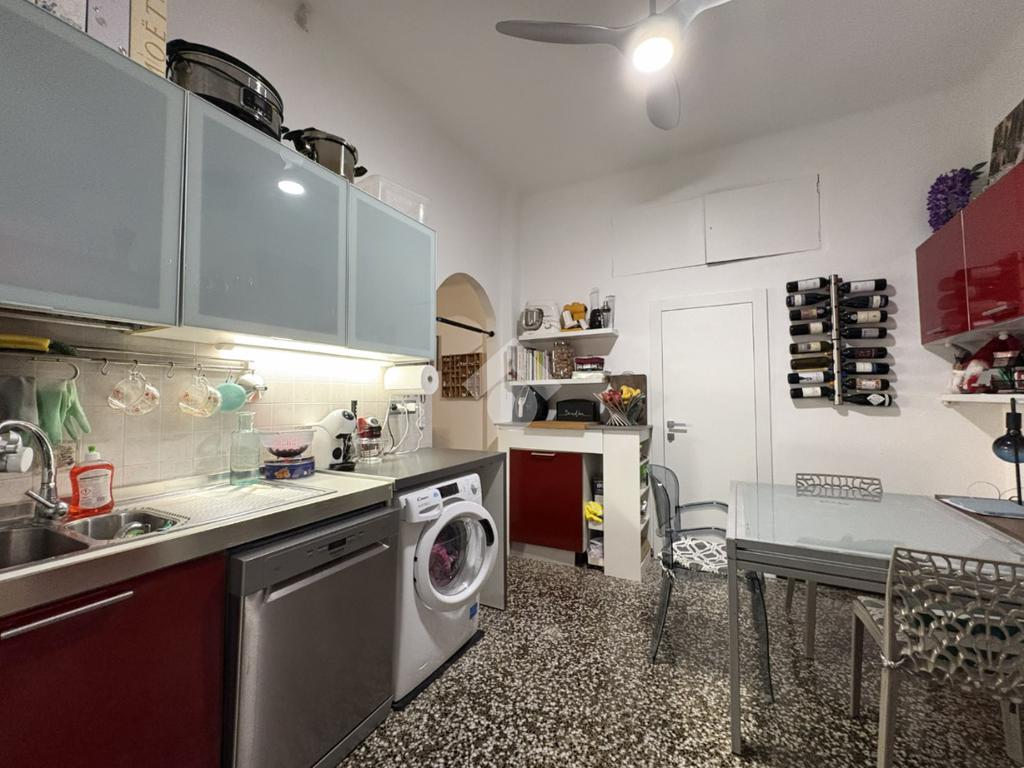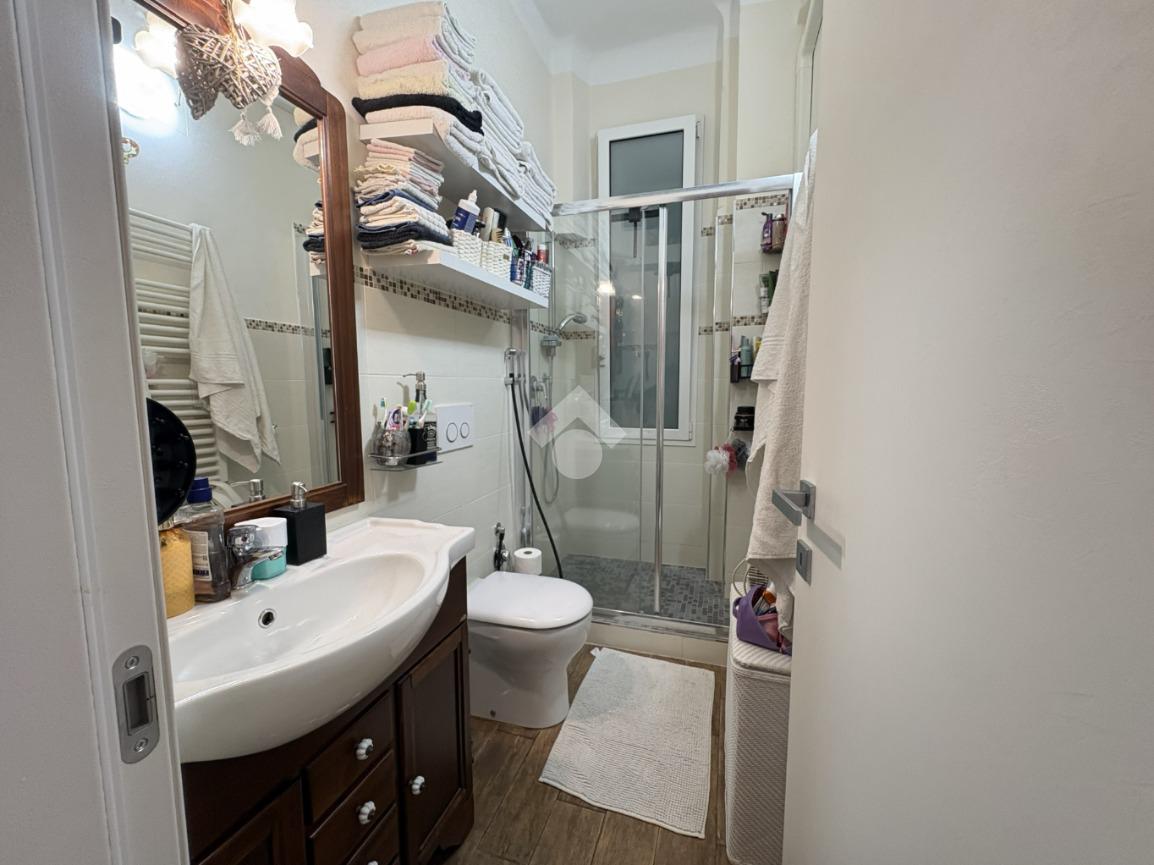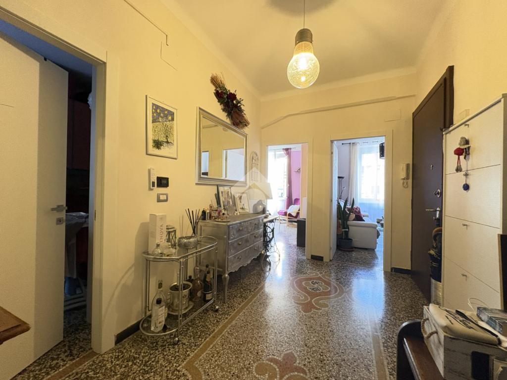 All'interno si presenta in stato ristrutturato ed è composto da un ingresso alla genovese arredabile che conduce al resto delle stanze, ovvero 3 camere di cui una adattata a salotto, il bagno finestrato con box doccia e la cucina abitabile di ampia metratura con annesso ripostiglio.