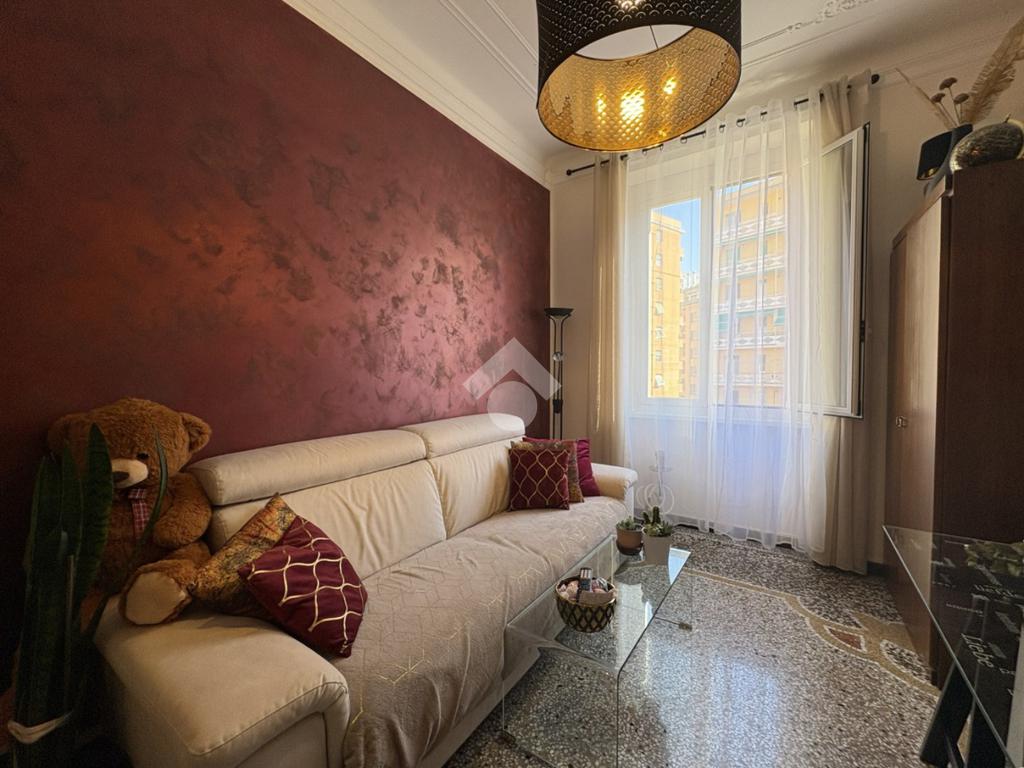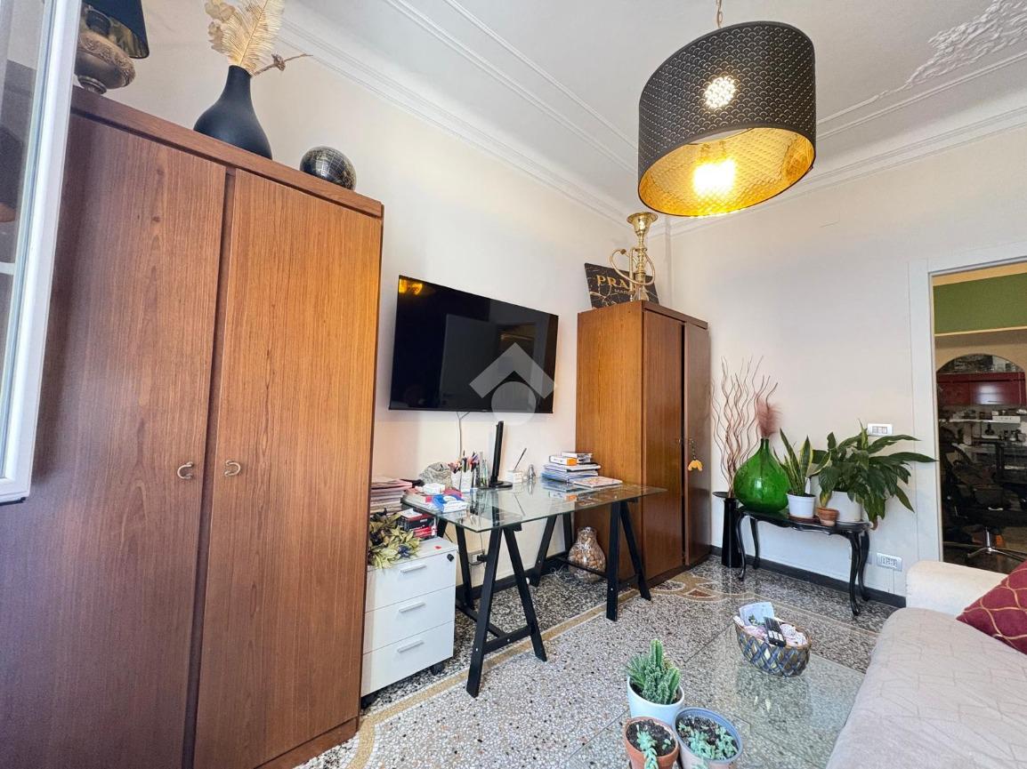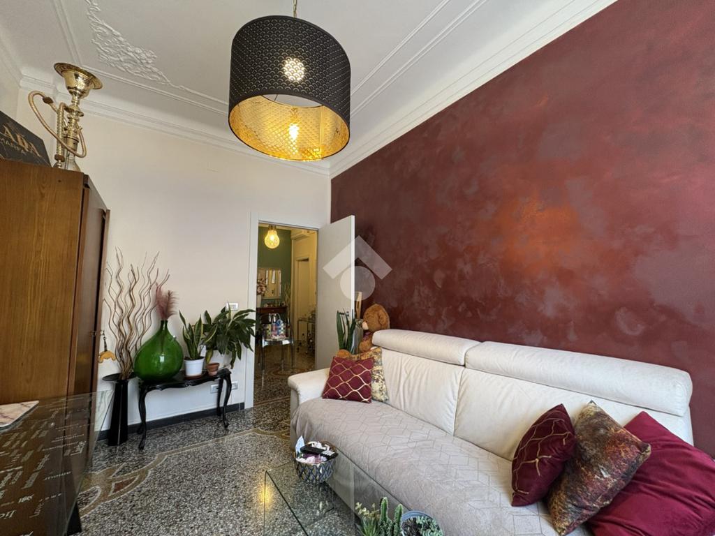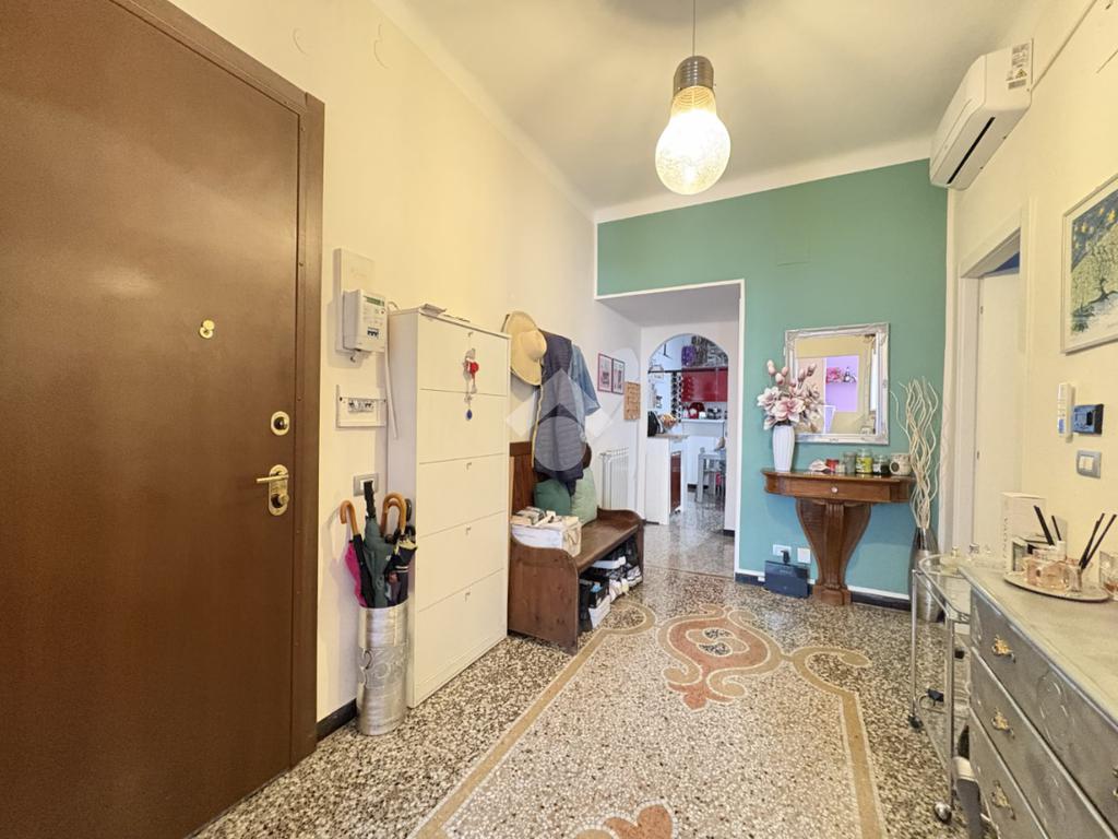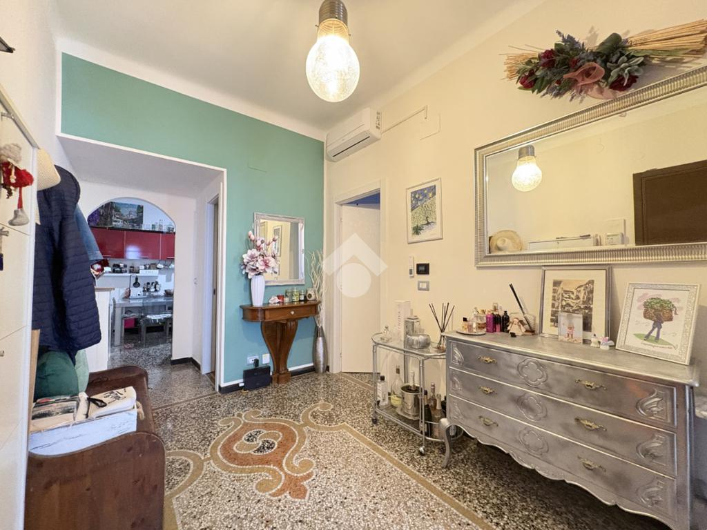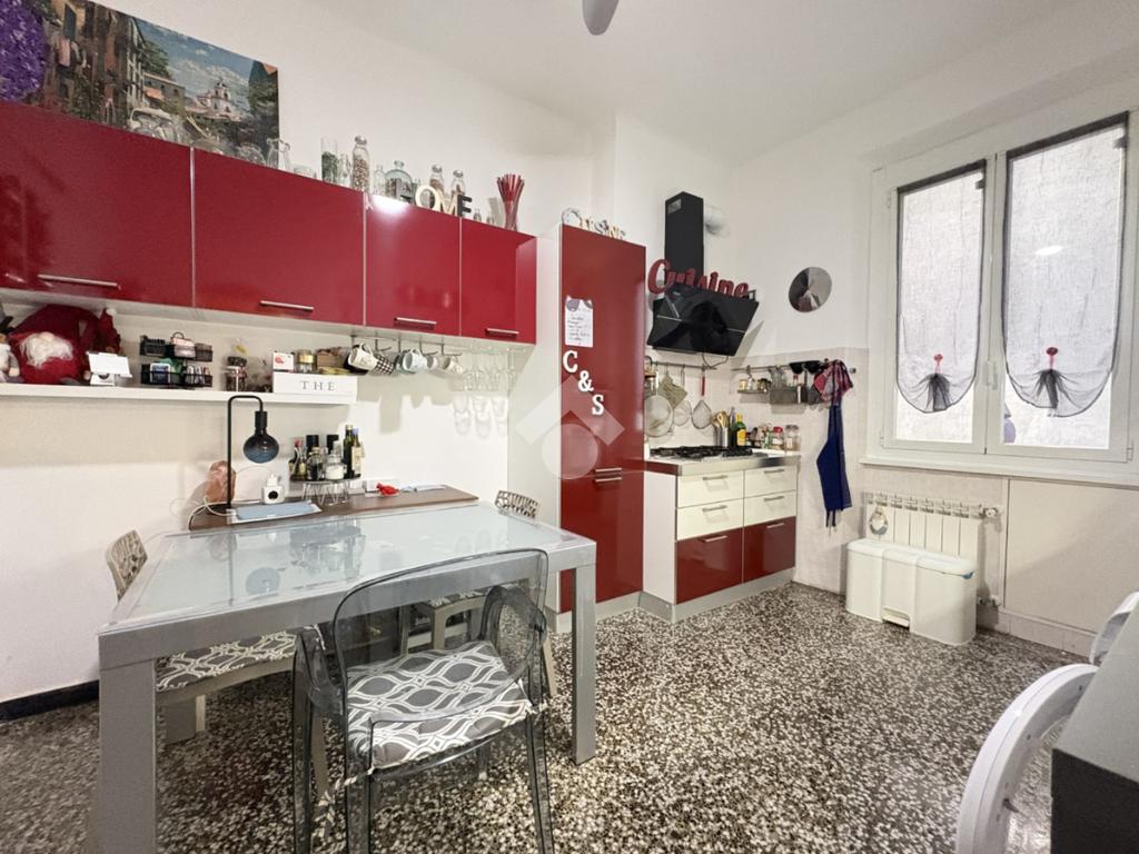 All'interno si presenta in stato ristrutturato ed è composto da un ingresso alla genovese arredabile che conduce al resto delle stanze, ovvero 3 camere di cui una adattata a salotto, il bagno finestrato con box doccia e la cucina abitabile di ampia metratura con annesso ripostiglio.