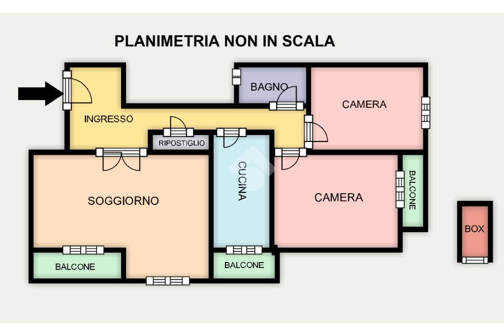 L'immobile al suo interno si presenta parzialmente da ristrutturare, esteso su 113mq commerciali, composto da ingresso arredabile, soggiorno doppio, 3 balconi, due camere da letto, dispensa e bagno finestrato con vasca.
